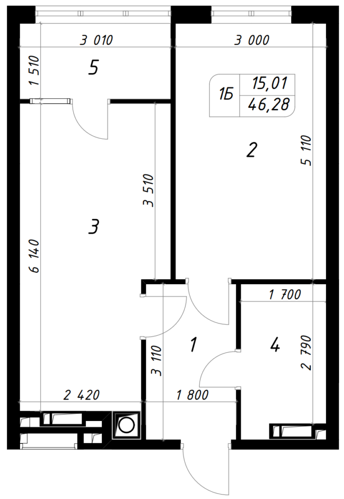 Загальна площа 46.28 м²